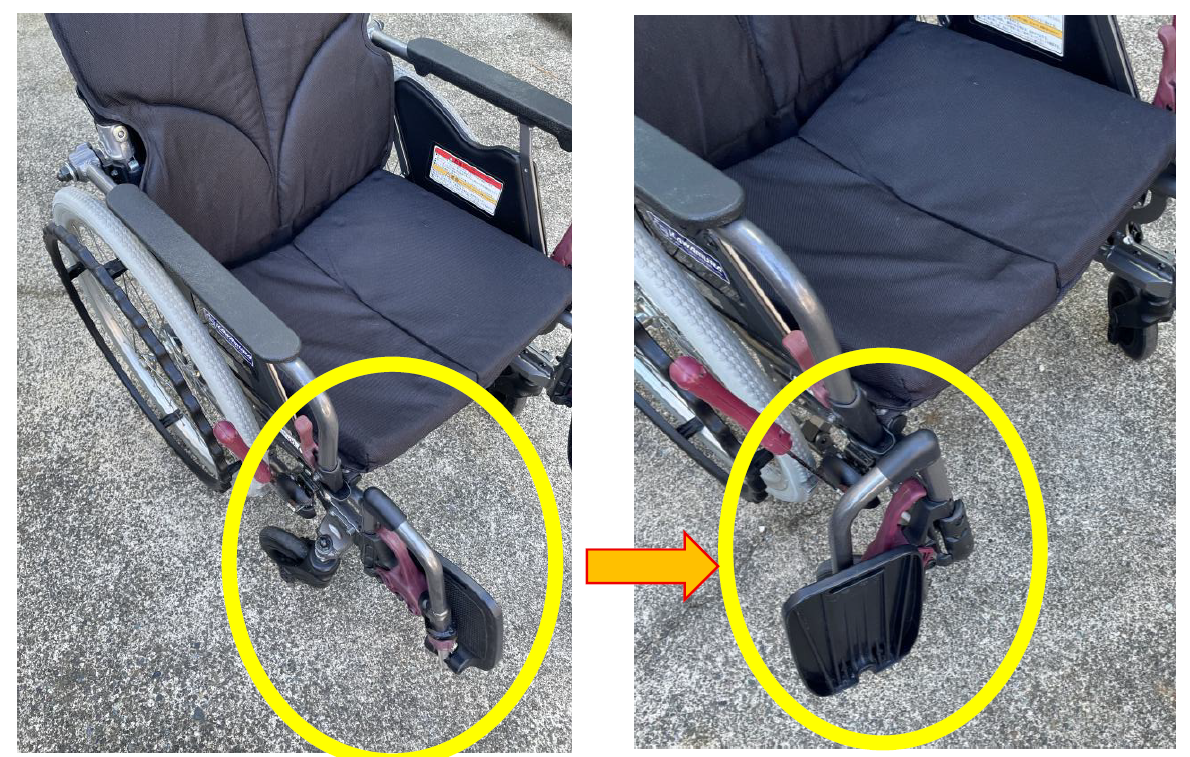 例えば、足を乗せる部分(フットサポート)を外側に開くことができるため、