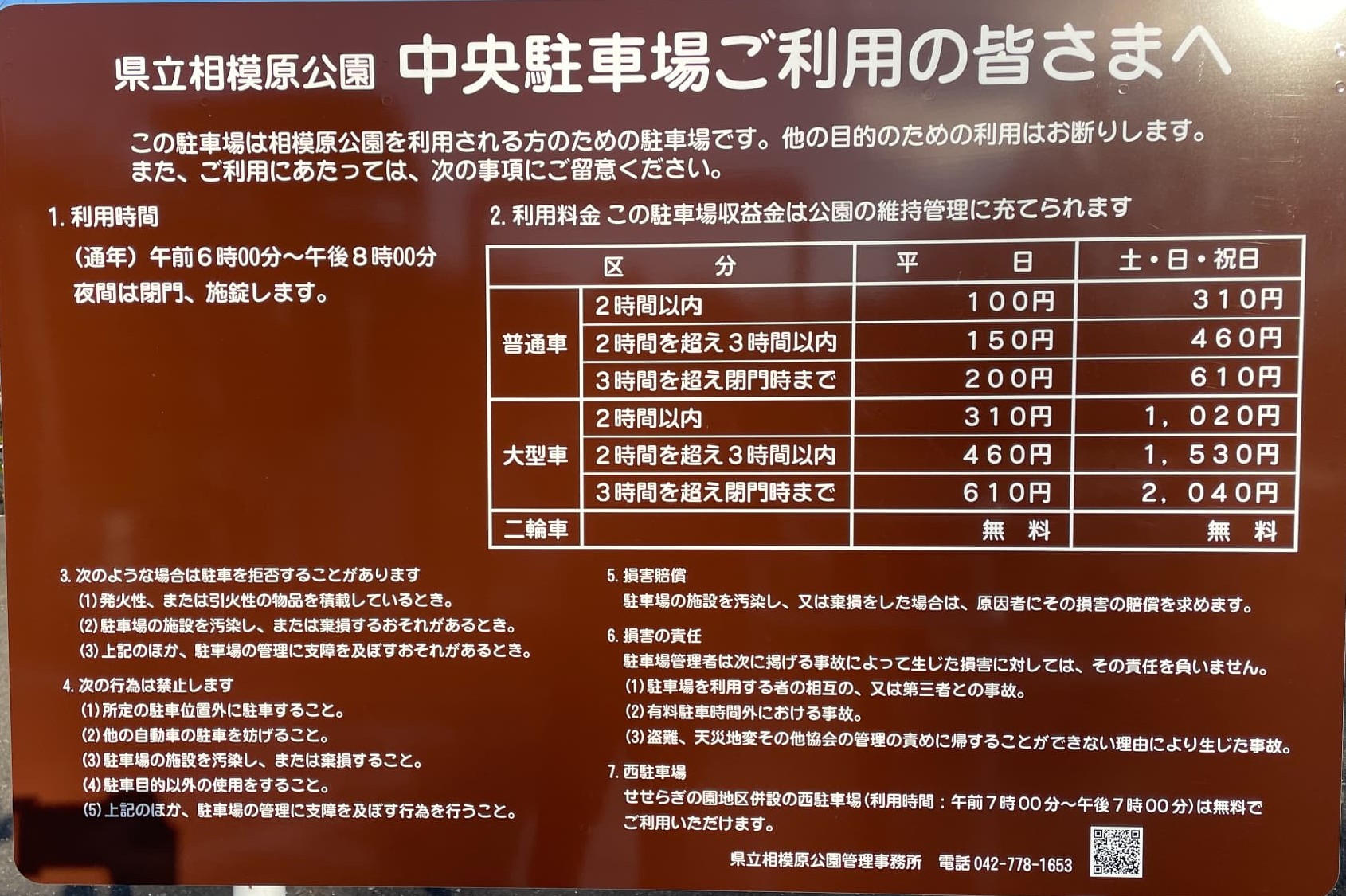 中央駐車場は、2時間未満であれば100円、閉園までの最大料金でも200円と、利用しやすい料金設定となっています。
