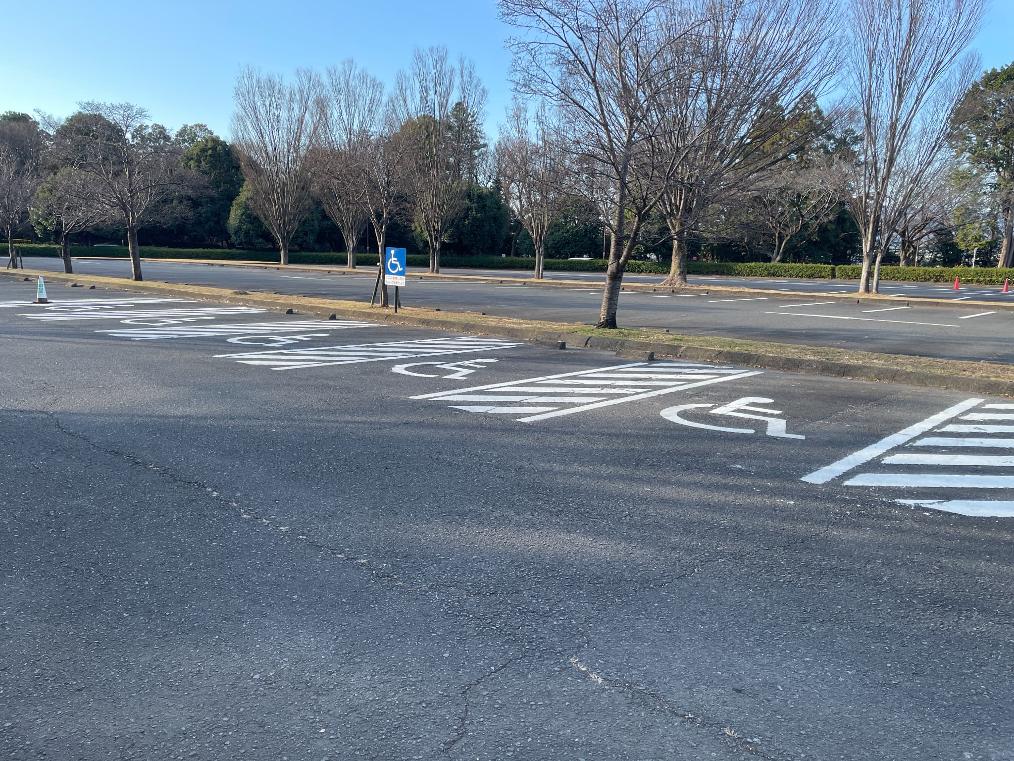 車いす用駐車場は園内に2か所あり、合計8台分のスペースが確保されています。いずれもゆとりのある広さで、乗り降りもしやすい印象でした。