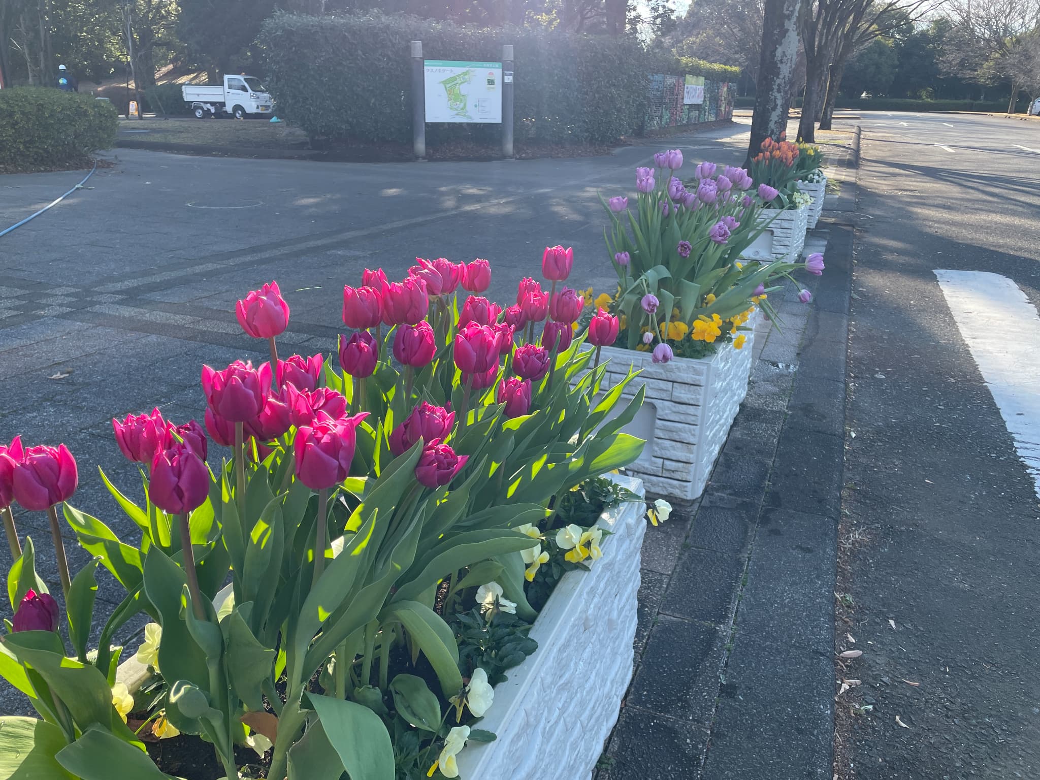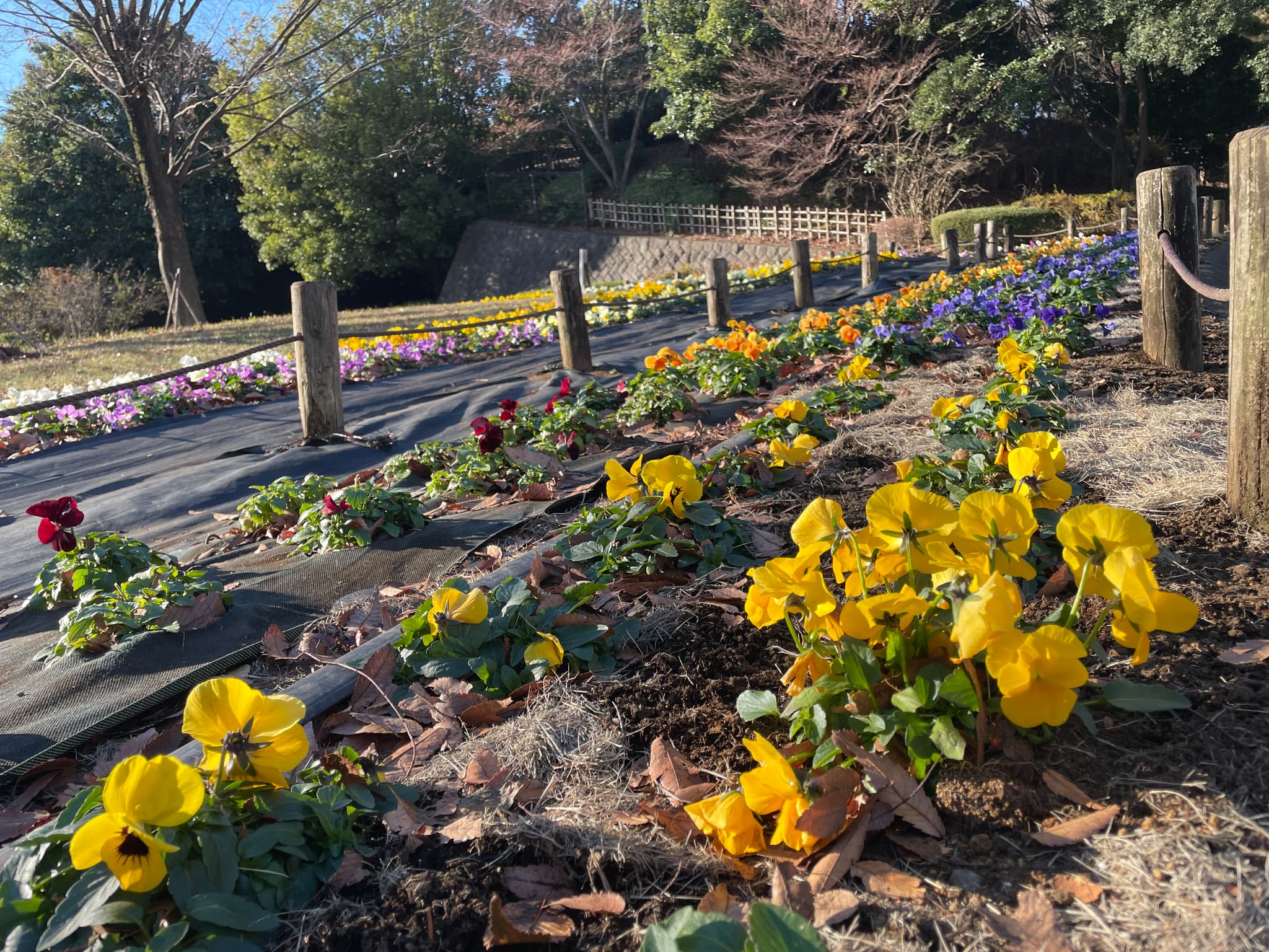 今回は冬の訪問だったため、花はパンジーやビオラが中心でしたが、春夏秋冬それぞれの季節で、さまざまなお花が楽しめる公園です。