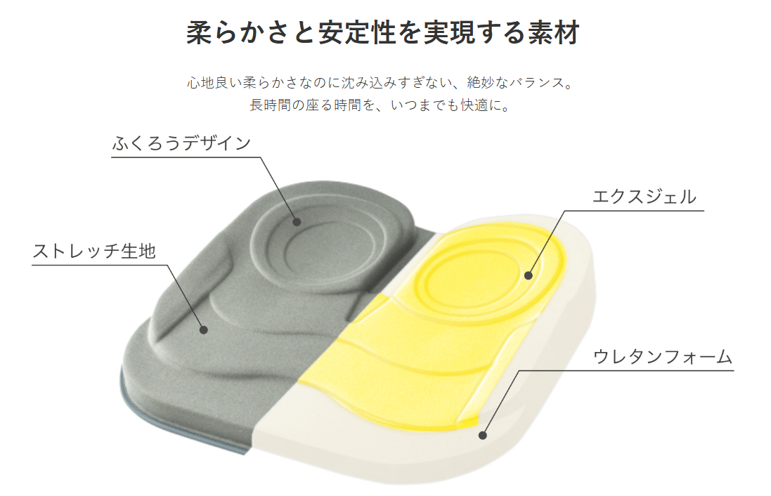 お尻や背中への負担を軽減し、安定した座位を保つことができます。